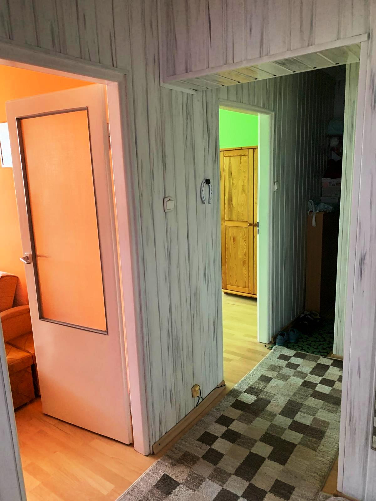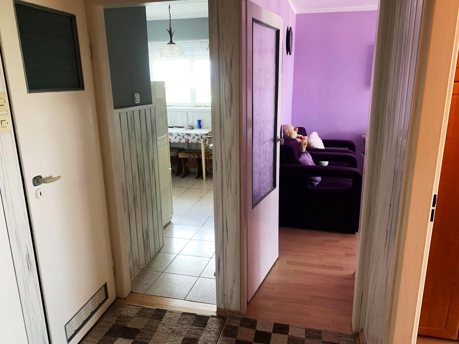 Wykończenie wnętrza: panele w pokojach, kafle w kuchni, w przedpokoju i w łazience, okna PCV w dobrym stanie.