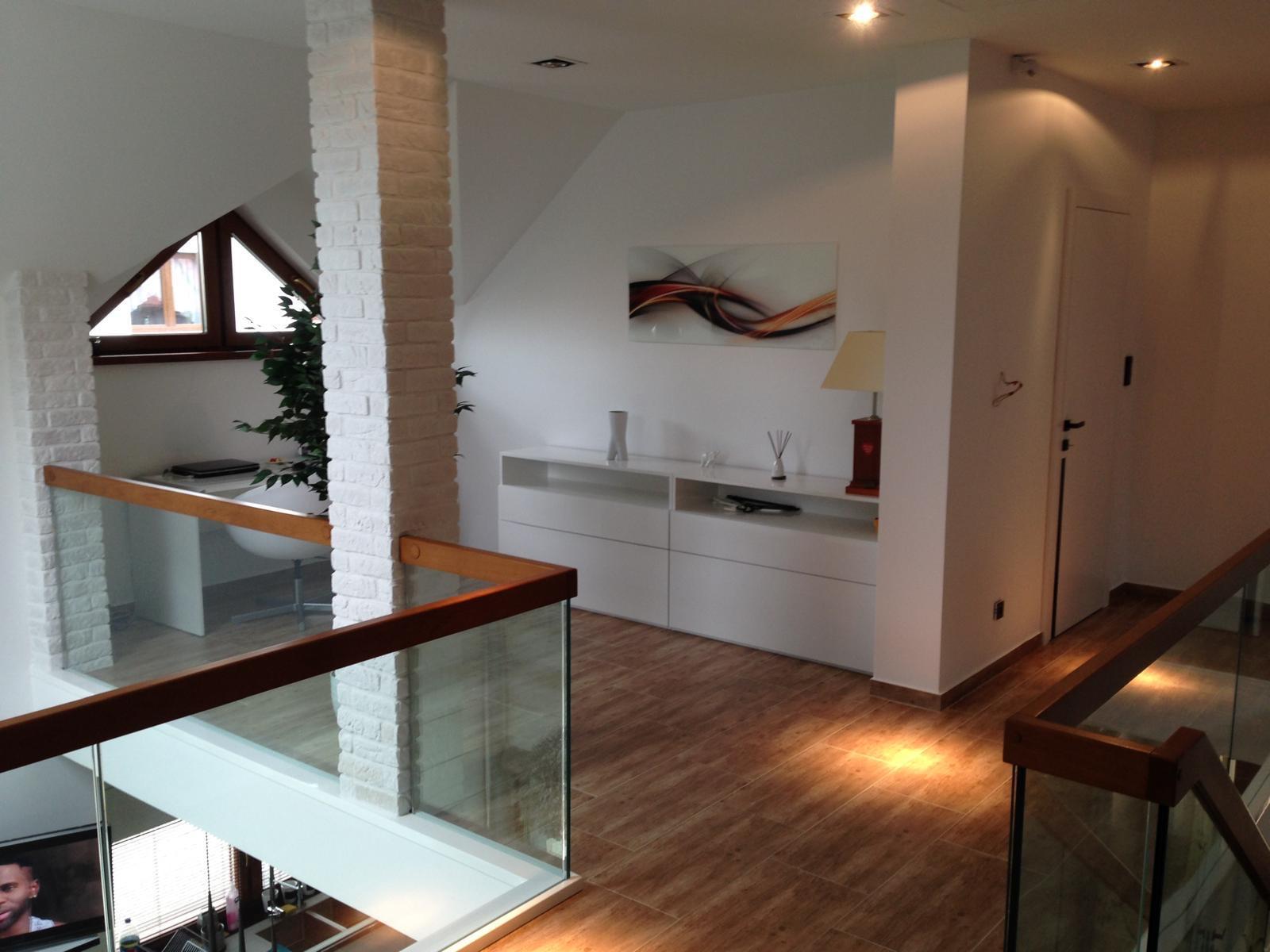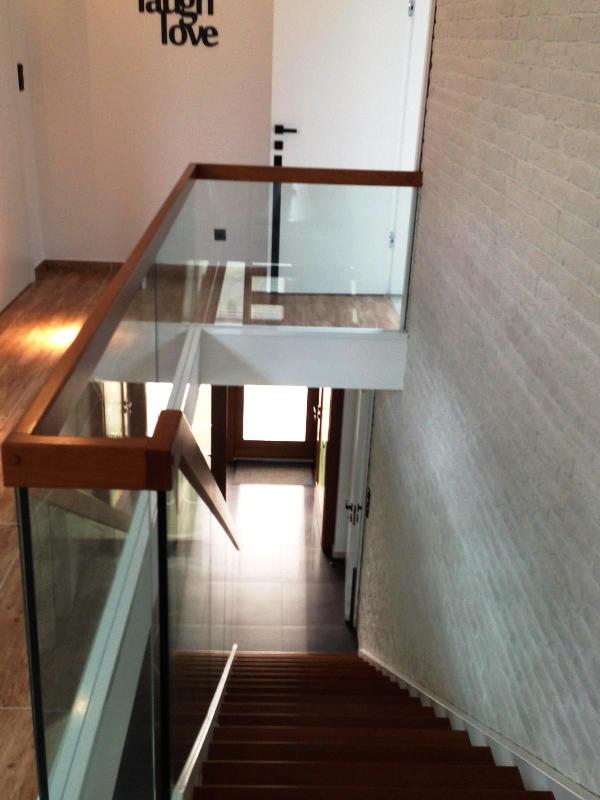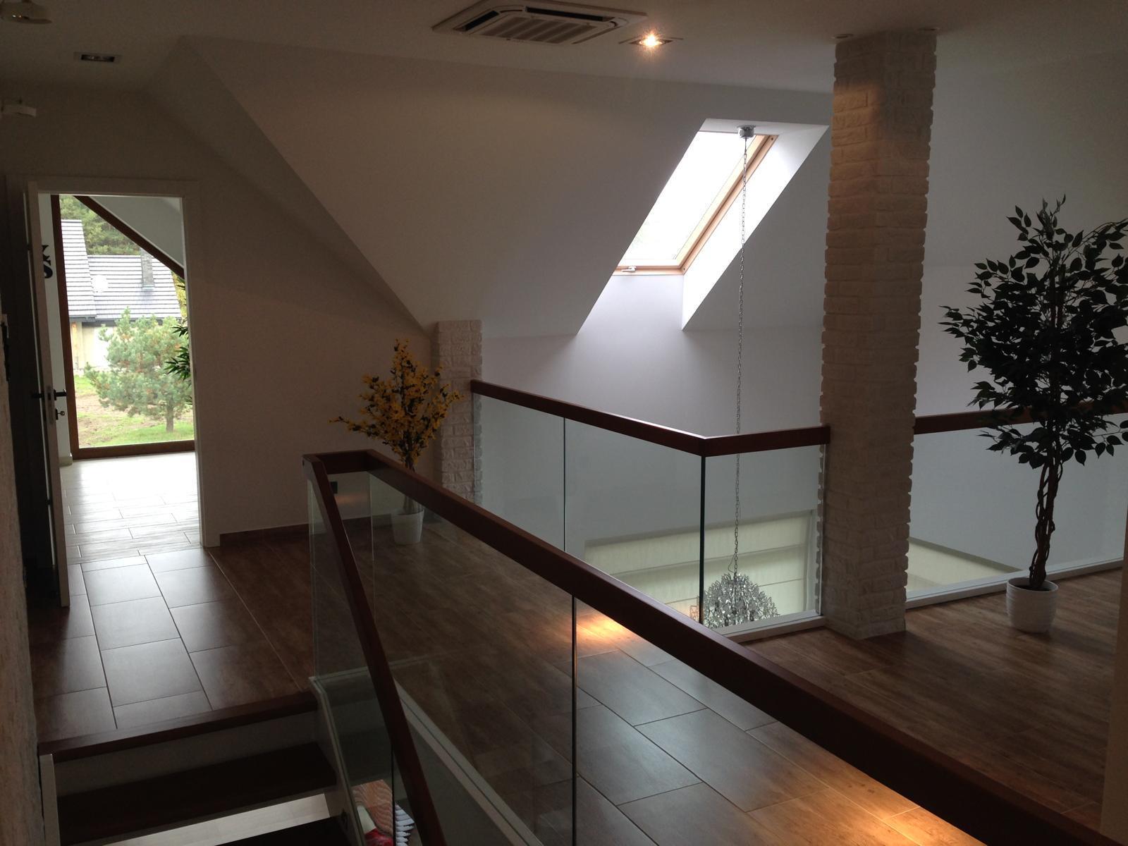 antresola z przeszklonymi balustradami,