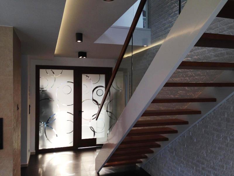 drewniane i szklane elementy wykończeniowe.