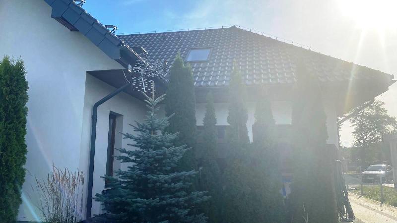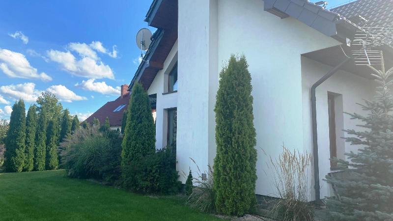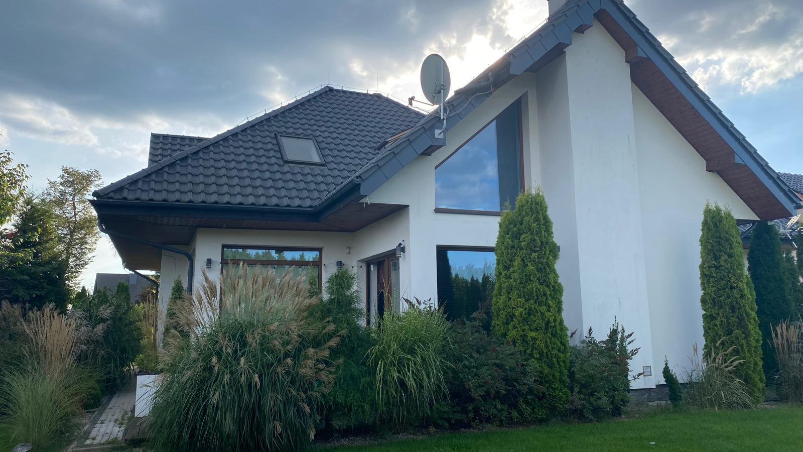 Wybudowany w 2013 roku, dom łączy nowoczesne technologie z funkcjonalnością i elegancją. Dach wykonany z drewnianej konstrukcji, pokryty wysokiej klasy betonową dachówką ceramiczną. Doskonała izolacja: ściany 25 cm grafitowego ocieplenia, dach pianą  35–38 cm i wełną mineralną.
